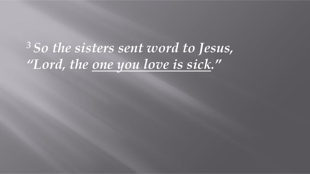 拉撒路病了,两个姐姐打发人去见耶稣说,“主啊,你所爱的人病了。”(约11:3)