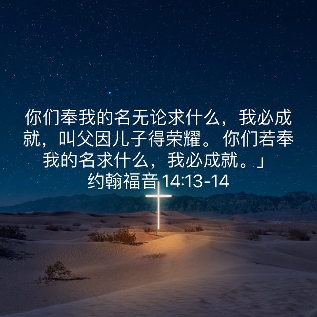 “你们奉我的名,无论求什么,我必成就,叫父因儿子得荣耀。你们若奉我的名求什么,我必成就。”(约14:13-14)