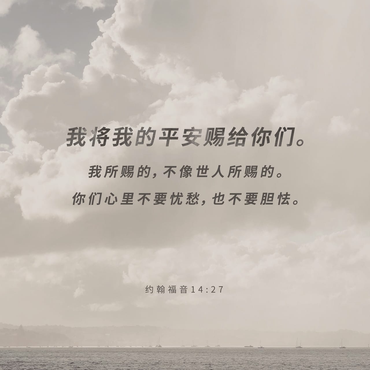 “我留下平安给你们,我将我的平安赐给你们。我所赐的,不像世人所赐的。你们心里不要忧愁,也不要胆怯。”(约14:27)