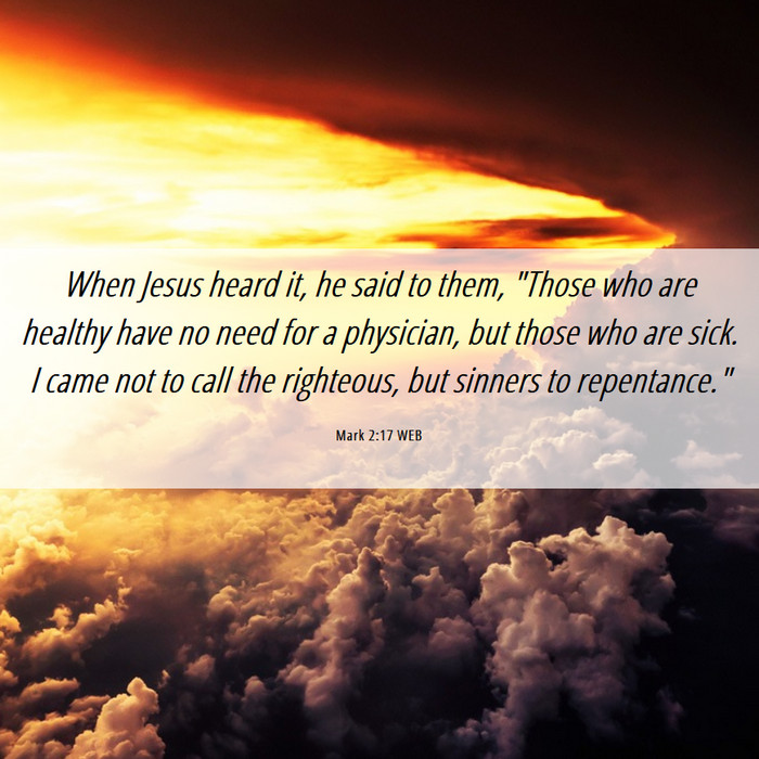 耶稣说,康健的人用不着医生,有病的人才用得着。找医生看病的人是病人。健康的人不用找医生看病。同样,寻找救主的人都认识到自己在罪中无力自拔,所以才需要救主。如果一个人不认为自己有罪,他也不需要救主,他也不珍惜耶稣在十字架上所流的血。