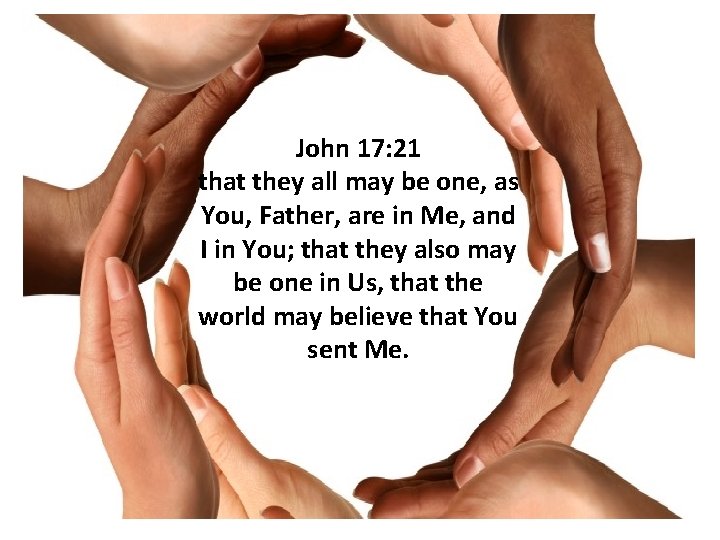 “我不但为这些人祈求,也为那些因他们的话信我的人祈求。使他们都合而为一。”(约17:20-21)