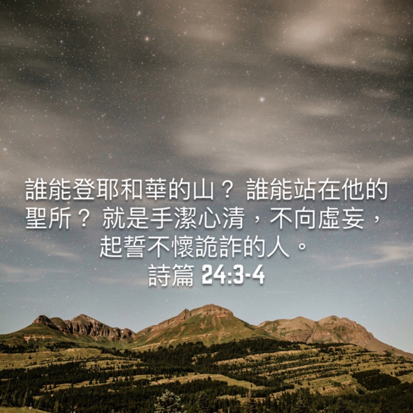 诗篇24:3-4,“谁能登耶和华的山。谁能站在祂的圣所。就是手洁心清,不向虚妄,起誓不怀诡诈的人。”