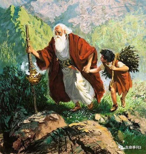 第三献爱子,把他所亲爱的、最爱的儿子以撒,上帝要他献给耶和华做燔祭。