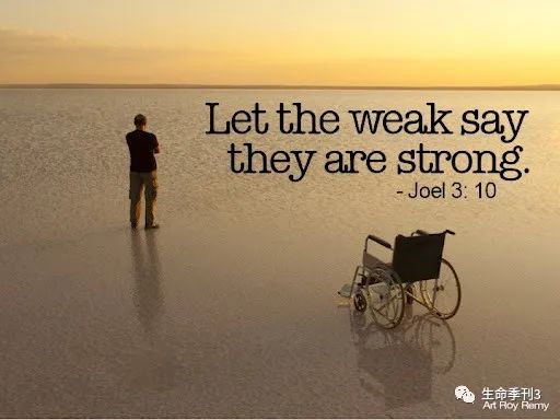 相反,假如我们愿意放下属灵的伪装,当我们的软弱来到的时候,勇敢地去面对它,并且为着自己正在经历的软弱来向神感恩:感谢神让你正在经历的困难,感谢神让你正在经历的病痛,感谢神让你正在经历的,可能别人没办法明白的痛苦。假如我们对神说:“神啊,我需要你的能力,因为我软弱”。那么基督的能力将会覆庇你,使你刚强。