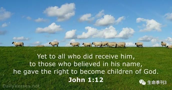 凡接待祂的,就是信祂名的人,祂就赐他们权柄,作神的儿女。这等人不是从血气生的,不是从情欲生的,也不是从人意生的,乃是从神生的。”(约1:12-13)