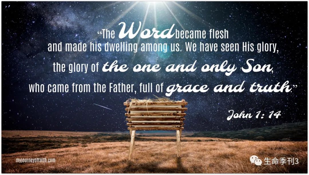 “道成了肉身住在我们中间,充充满满的有恩典有真理。我们也见过祂的荣光,正是父独生子的荣光。”(约1:14)