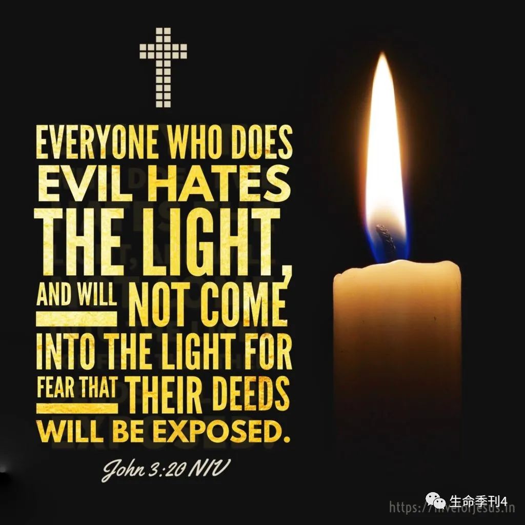 “凡作恶的都恨光,不来接近光,免得他的恶行暴露出来。”(约3:20,新译本)